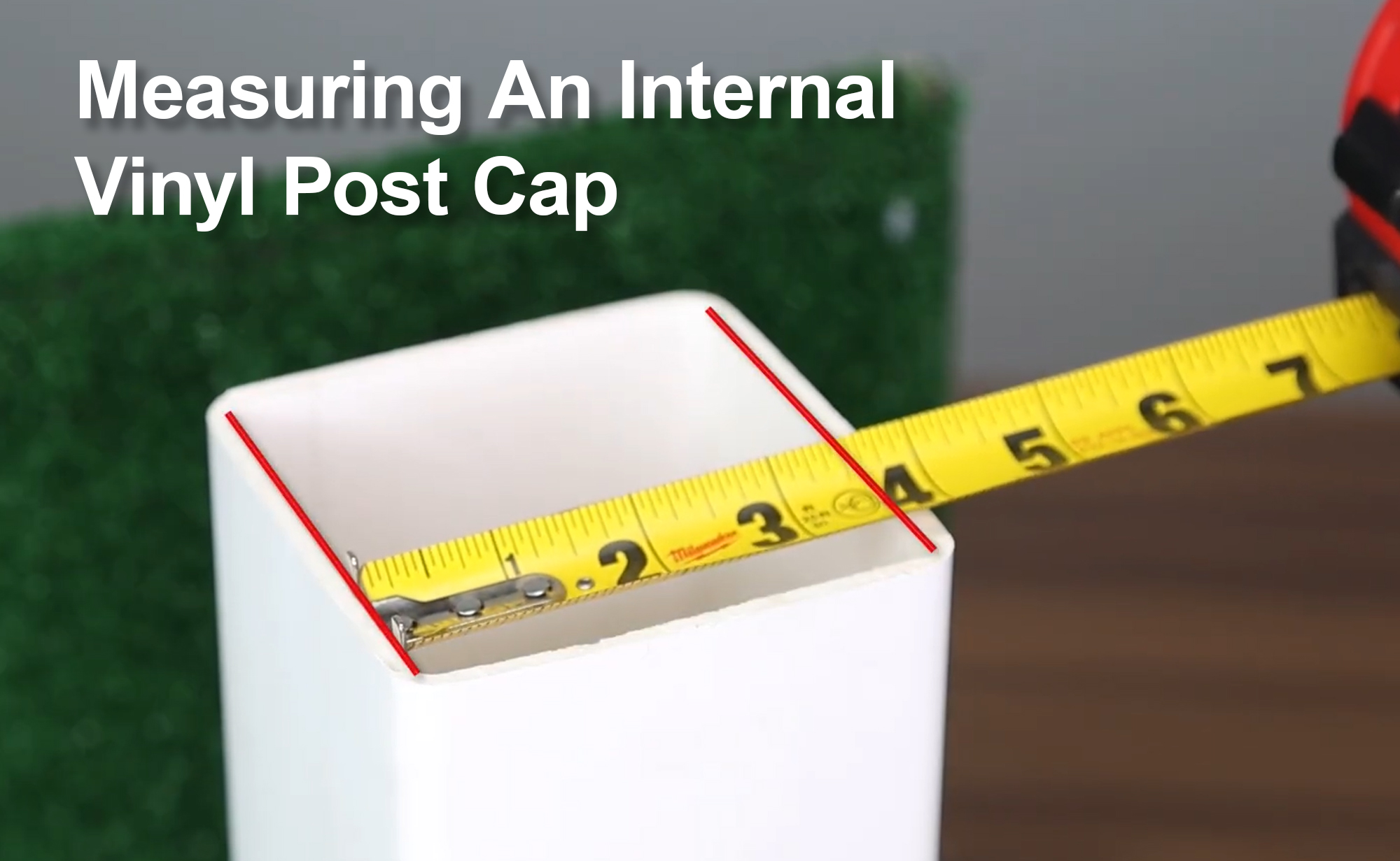Measuring an Internal Post Cap: Use a tape measure to find the dimensions of the post from the inner wall to the opposite inner wall of the post.